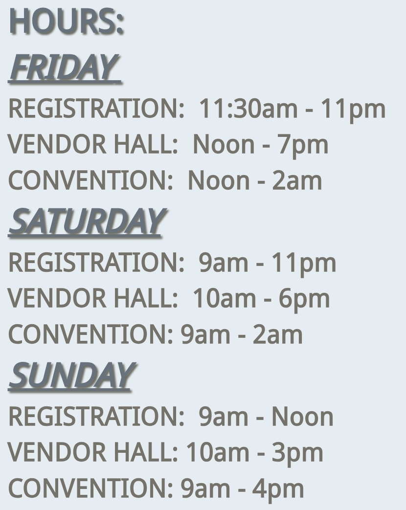 Due to the convention being close to the time we normally have our meets, February's meet Will be combined with ConNooga since most group members will be attending. Please check out all of the details below. Ticket pricing and times vary day by day. Also, Be sure to visit their website to check venue and convention rules and policies. We expect all of our members to follow all applicable laws and policies while attending this event!